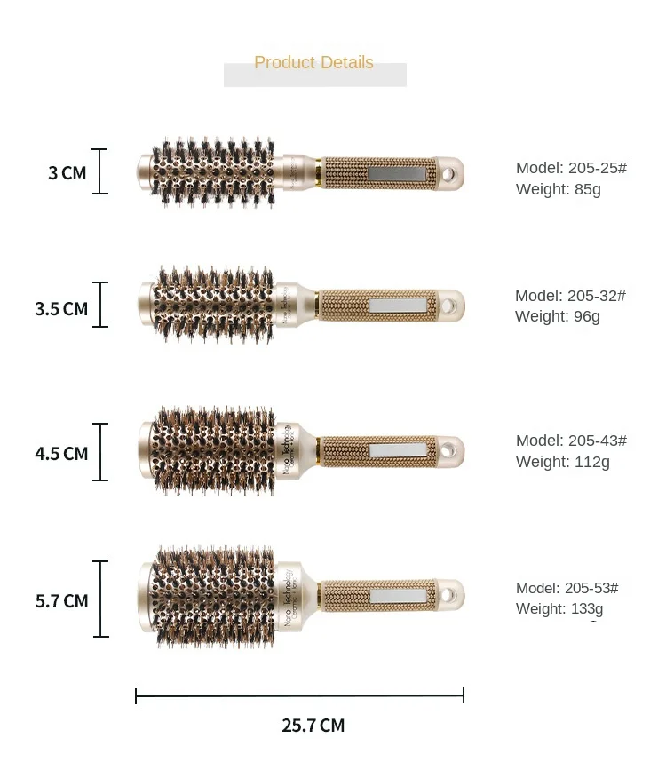 Pente Cilindro e Rolante. Cabelo Enrolado. Tubo de Alumínio. Térmico Barril Redondo.